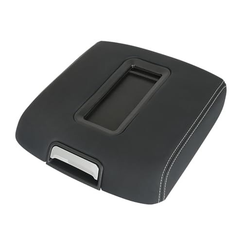 A Abigail Center Console Armrest Cover for 2007-2013 Chevy Silverado, Tahoe, Suburban, Avalanche, GMC Sierra, Yukon, Yukon XL Auto Leather Suture Console Lid Cover Replacement (Black)
