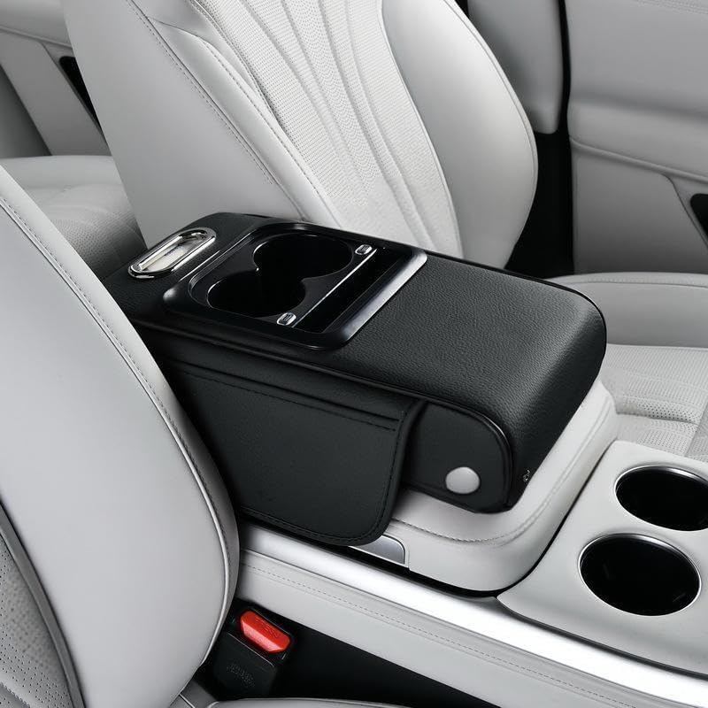 Auto Center Console Armrest Pillow, Memory Foam Car Armrest Cushion with Cup Holder and Phone Holder Storage Bag Universal for Most Car