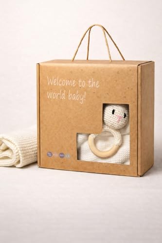 BQUBO Baby Swaddle Blankets for Girls, 4PCS Newborn Accessories Set with Matching Hat and Bow Headband with Hello World Wooden Birth Announcement Card, Baby Blankets for Girls (Pink)