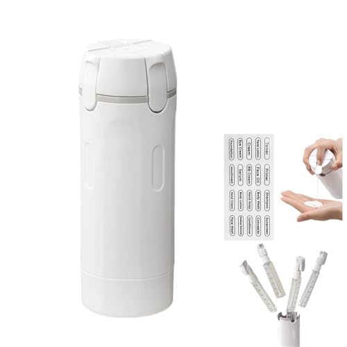 4 in 1 Travel Dispenser Bottle, 4 Pack 30ML Travel Bottles for Toiletries, Portable Leak Proof Refillable Travel Size Containers for Shampoo Lotion Conditioner Cream, with Scale and Label