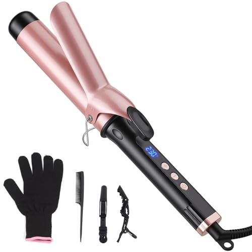 Tiwiche S-Shaped Curling Iron for Beach Waves, 1.5-Inch Barrel with Tourmaline Ceramic & Dual Voltage, 30s Fast Heat, 4 Temp Settings (320-410掳F), Auto Shut-Off, Anti-Tangle 360掳 Swivel Cord (White)
