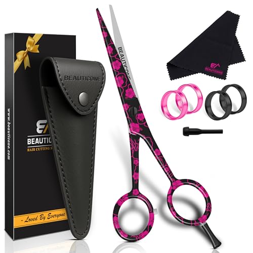 AOLANDUO Professional Hair Cutting Shears, Japanese Stainless Steel Barber Scissors, Convex Edge, Ergonomic Right-Handed, Salon & Home Use, Includes Case & Accessories, 1 Count, 6 in