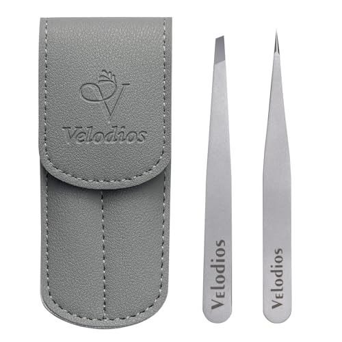 Velodios Pointed Tweezers for Women Facial Hair, Professional Stainless Steel Tweezers for Eyebrow, Chin Hair and Ingrown Hair Removal