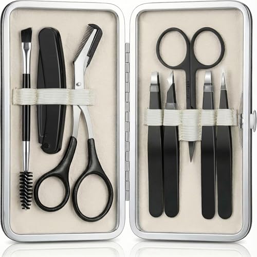 Motanar 2 Pieces Tweezers Scissor Handle Straight Tip Scissor Shaped Eyebrows Tweezers for Hair Plucker Remover Facial Hair Eyebrows Care (Silver and Black)