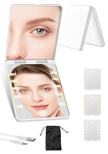 Auxmir 30x Magnifying Mirror, Double Sided 30X 1X Handheld Mirror with Handle, Foldable & Adjustable Pedestal, Portable Travel Makeup Hand Mirror for Plucking Eyebrows, 5.5 Inches (White)