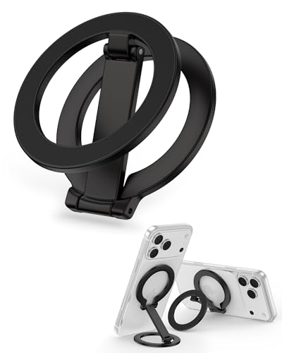 iWALK Magnetic Phone Stand for Desk, Angle and Height Adjustable Cell Phone Stand, Foldable Mobile Stand for iPhone Series, Samsung & Android Series, Black