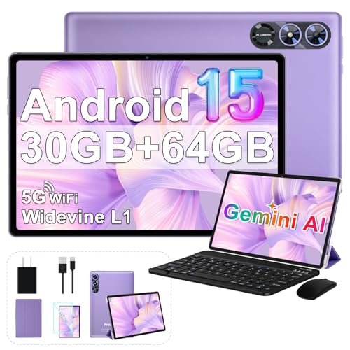 2025 Android 15 Tablet with Keyboard | Gemini AI, 30GB+128GB Octa-Core Electronics Tablets w/ 10 Inch IPS HD Display, 8000mAh, 5G WiFi, 1TB Expand, Mouse+Case, BT 5.0, Widevine L1, Metal Body -Purple