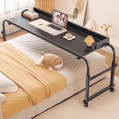 Muvai 30" Large Overbed Table with Wheels Adjustable Height Bedside Table for Home Medical Use - Rolling Table for Hospital - Over Bed Desk,Versatile Bedside, Lap Desk, Laptop Stand, White Oak