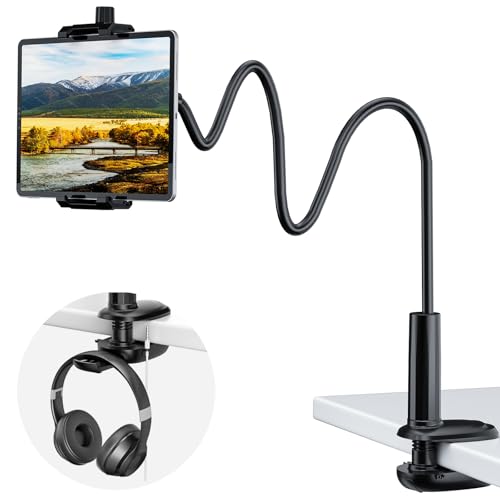 Uniwit Tablet Stand Holder for Bed,Table-Flexible Adjustable Long Gooseneck Arm Tablet Mount Clamp Compatible with Mobile Phone/iPhone/iPad/Galaxy Tab/Kindle Fire/or Other 4.7-12.9" Devices.