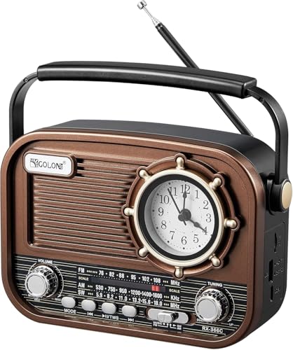 Audiocrazy Vintage Wooden AM FM Radio with Plug in Wall, Retro Bluetooth Speaker with Aux in, Headphone Jack, Bass Control, for Home, Office