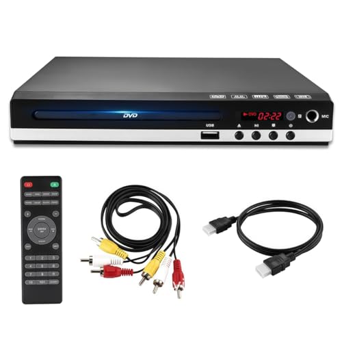DVD Player for tv with HDMI, All Region DVD Player, Easy-to-Use Player for Elderly, CD Player for Home Stereo System, Includes HDMI and RCA Cables - Perfect for Home Entertainment
