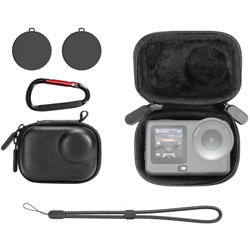 TELESIN Medium Hard EVA Carrying Case for DJI OSMO Action 6 | Waterproof Protective Storage Bag | with Wrist Strap | Compact Design with Dual-Zipper & Custom Compartments & Mesh Pockets