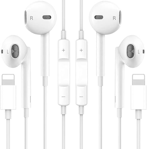 2 Pack Wired Earbuds Headphones for iPhone, Hi-Res Extra Bass Earphones, HiFi-Audio Stereo Noise Isolating with Mic+Volume Control Compatible with iPhone 14 Pro Max/13/12 Mini/SE/11/X/XS/XR/8/7 Plus