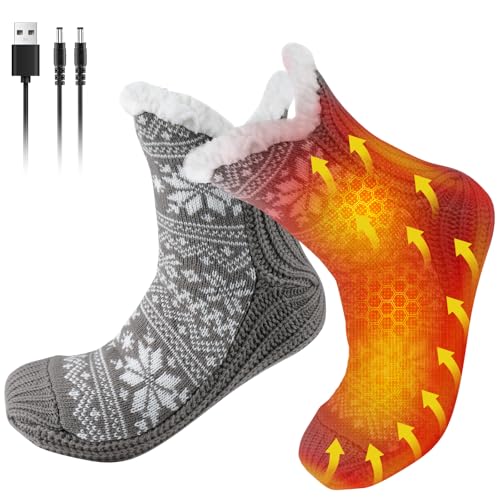 USB Heated Socks for Women Men Christmas Electric Heated Fuzzy Slipper Socks Women Winter Heating Sock Foot Warmer for Indoor Home Office Cold Feet Plantar Fasciitis Achilles Tendinitis