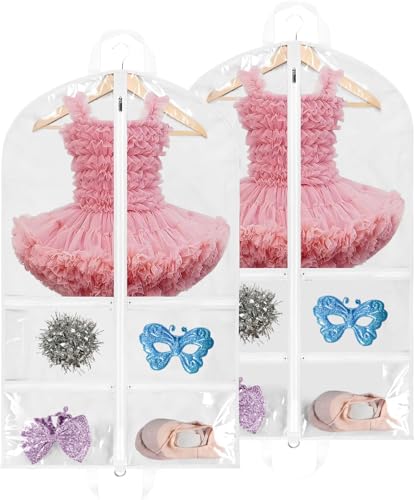 Olutacot 12 Pcs Garment Bags for Dance 40 Inch Dance Costume Bags with 3 Clear Zipper Pocket Hanging Garment Covers Waterproof Costume Organizer Bags for Dance Competition Travel Closet Storage(Black)