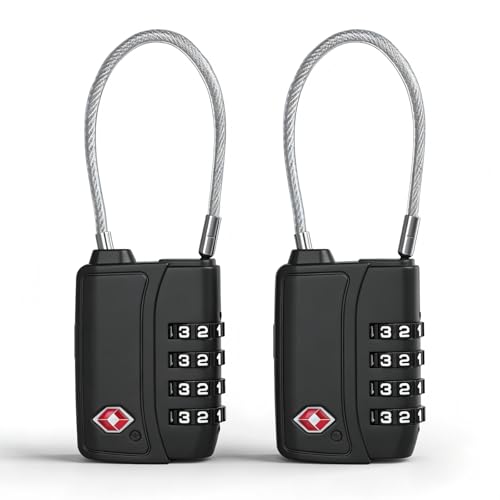 UP Security Travel Luggage Locks TSA Approved, Small Combination Padlock with Cable, Combo TSA Lock for Suitcase, Locker & Gym, Cabinet, Bag Zipper, Lock with Code for Travel Accessories (Silver)