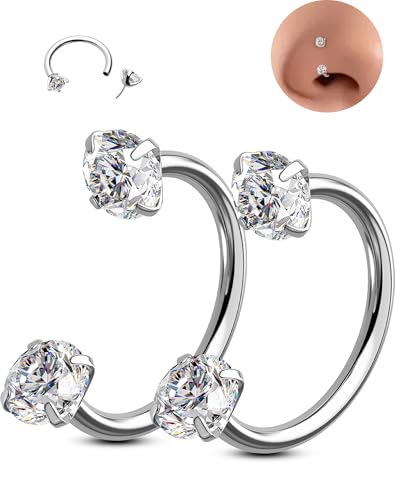 LOVEBODYJEWELRY Double/Triple Hoop Nose Ring 316L Surgical Steel CZ Cartilage Earring Septum Ring Septum Clicker Lip Rings Conch Helix Rook Tragus Piercing Jewelry 16G/18G/20G