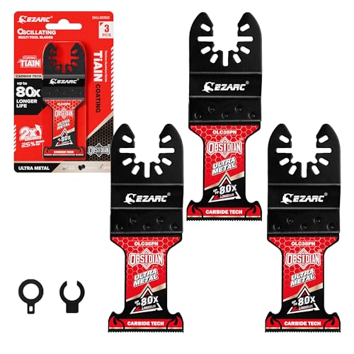 EZARC TiAlN Obsidian Carbide Oscillating Saw Blades (Pro), Oscillating Tool Blades for Hard Metal, Nails, Bolts & Screws, Universal Fit Multi Tool Blades, 3-Pack