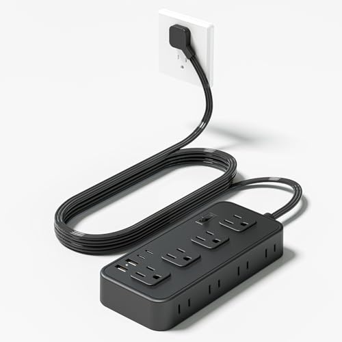 10 Ft Power Bars with Surge Protector, Extension Cord Indoor with 8 Outlets 4 USB Ports(2 USB C), Flat Plug Power Bar, 10 Ft Long Braided Power Cord for Home, Office, Dorm Room Essentials