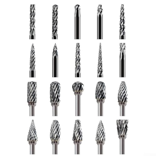 Carbide Burr 1/4" Shank, SF-5 Tungsten Double Cut Rotary Die Grinder Bits - Cutting Burrs for Milwaukee, Dewalt and Makita Die Grinder Accessories - Wood Carving Metal Working & Sturdy Storage Case