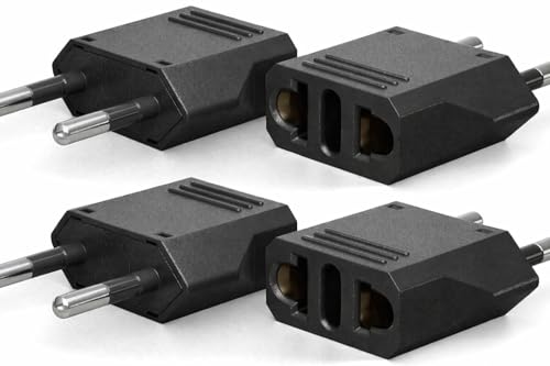 4 Pack of EU European to US/CA Plug Adapter-Type A, Europe Outlet Travel Adapters Universal Power Jack Wall Plug Travel from Europe/Asia to USA/Canada (Black)