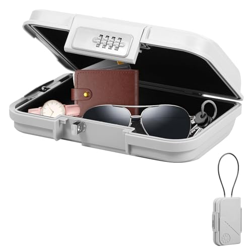 AMIR Travel Safe Portable Lock Box, 4 Digit Combination Lockbox, Cash Box, Waterproof Mini Security Case with Removable Chain, Portable Beach Safe Box for Travel, Beach,Office,Hotel,Cars,Dorms