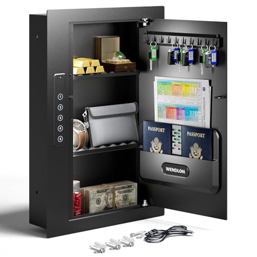 Hidden Wall Safe with Concealed Panel 鈥 Fireproof Steel In-Wall Lock Box Fits 16鈥 Studs 鈥 Key Lock Security Cabinet for Cash, Firearms & Documents 鈥 Recessed Safe for Home & Office (Black)
