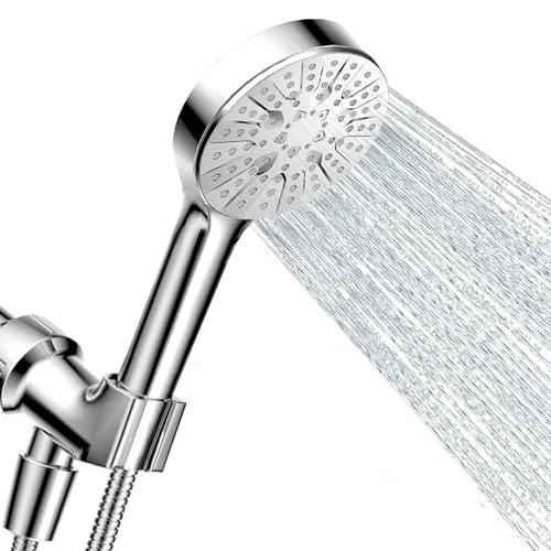 Handheld Shower Head,7 Spray Modes/Settings,High Pressure Shower Head Handhelds Anti-Clog Nozzles with Big Head+5.9FT/1.8M Stainless Steel Hose Powerful to Clean Tile & Pets,Chrome