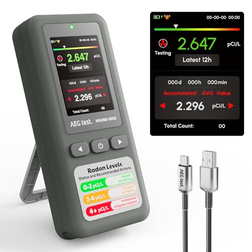 AEGTEST HOUND-3699 Radon Detector for Home, 1-Hour Effective Measurement, Historical Data Storage with Touchscreen Color Display, Accurate and Fast Detection, Compact Design for Home Safety-Black