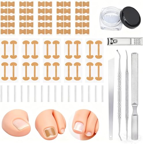 Ingrown Toenail Treatment, Includes 2 Types of 60Pcs Ingrown Toenail Corrector Patch, Professional Ingrown Toenail Tool with 2 Professional Pedicure Tools for Ingrown Toenail