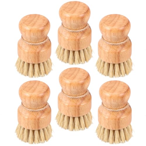 VALENTISE 4 Pack Bamboo Dish Brush Set, Natural Palm Dish Scrubber for Pots and Vegetables, Sisal Bristle Bamboo Scrub Brush for Cleaning Dishes and Pans