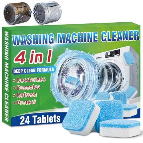 Washing Machine Cleaner Tablet, 24 Tablets Laundry Descaler for HE, Top Load & Front Load Washer Cleaner, Highly Efficient Deodorizer Deep Clean Inside Drum and Laundry Tub Seal
