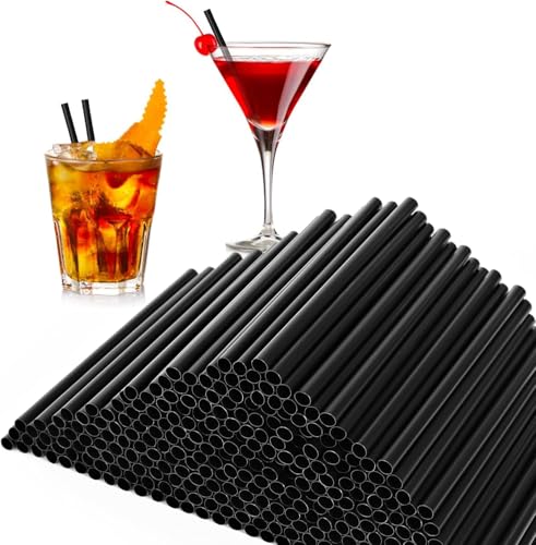 ALINK 500-Pack Black Flexible Drinking Straws, Plastic Disposable Bendy Straws - 7.75" x 0.23"
