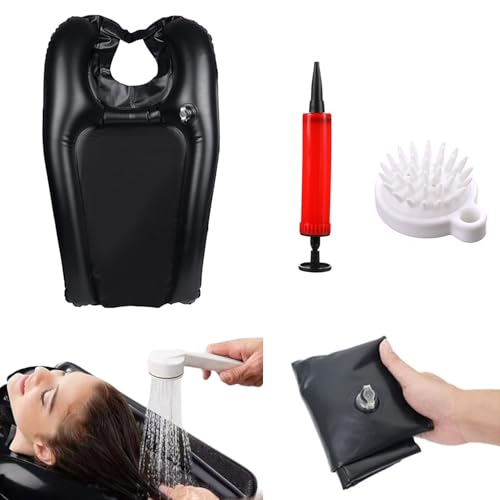 LinamHoz Portable Shampoo Bowl with inflator,Portable Shampoo Bowl for Bedside and in Bed Lightweight Shampoo Basin for Outdoors or Bedside (Black)