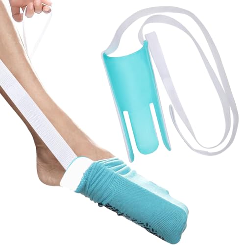Sock Aid, Compression Sock Helper Stocking Slider with Foam Grip Handles, Sock Aid Tool and Pants Assist for Elderly, Disabled, Pregnant, Diabetics, Sock Puller Aid Easy On and Off (Blue)