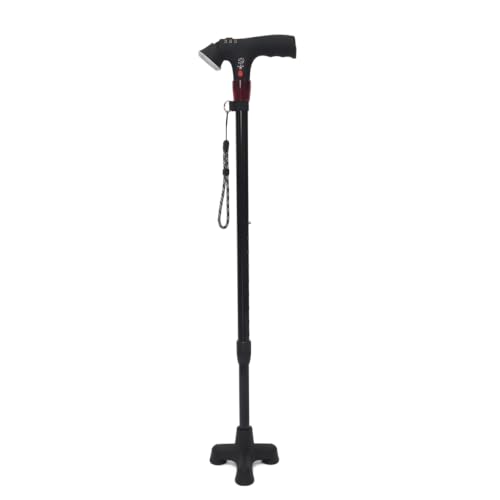 Folding Cane with Led Light, Adjustable Canes for Men and Women, Walking Stick for Elderly with Cushion Handle and Pivoting Quad Base for Hiking Mountain Climbing Backpacker鈥