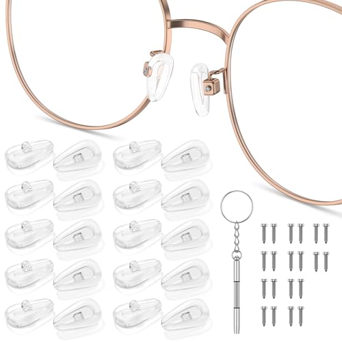 20 Pairs Silicone Nose Pads for Glasses, Stick on Nose Pads, D Shape Adhesive Nose Cushions for Eyeglasses Spectacle Reading Glasses Sunglasses, Transparent