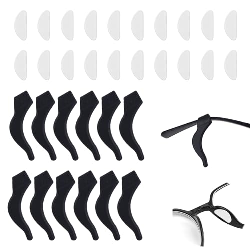 20pcs Glasses Nose Pads & 12pcs Ear Hook Grips, Silicone Premium Non Slip Nose Pads and Ear Grips Glasses Holder Set Smart Eyeglass Sunglasses Accessories Compatible with Headliner (Gen 2)/Skyler