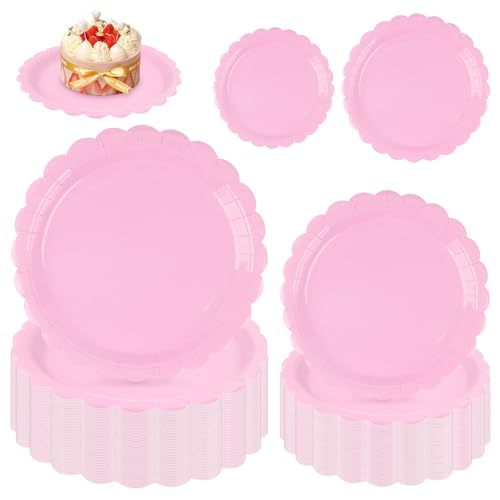 Confettiville Party Paper Plates, 50-Pack, Disposable Gold Foil Scalloped Edge, 9-Inch Pastel Plates
