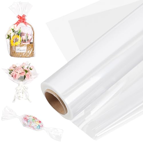 150ft x 31.5inch Cellophane Wrap, Cellophane Roll Clear Wrapping Paper 25渭m for Birthday Gifts Hamper Basket Flower Bouquet Craft, Width Folded in Half