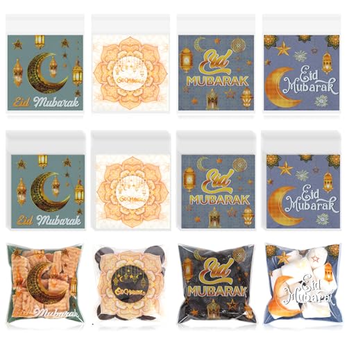200PCS Ramadan Cellophane Bags Self-adhesive Candy Bags Eid Treat Bag Ramadan Mubarak Gift Bag Eid Candy Goodie Bag For Muslim Islamic Iftar Diwali Party