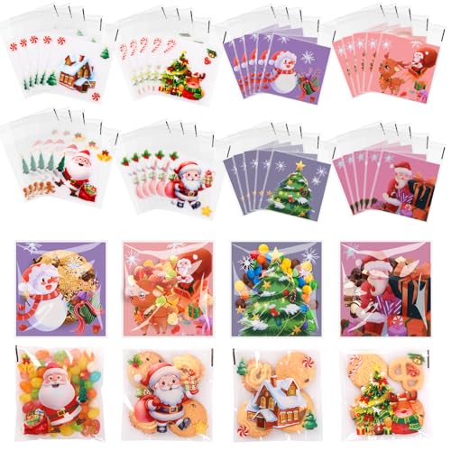 GWHOLE 100 Pcs Christmas Treat Bags Cellophane Bags with Twist Ties for Candy Goodie Cookie Small Gift Xmas Baking Party Supplies(6 * 10inch)