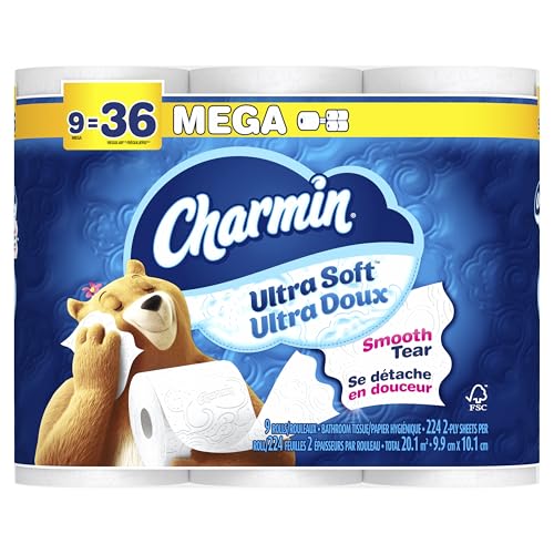 Cottonelle Toilet Paper, 12 Mega Rolls = 48 Regular Rolls, Ultra Comfort, Soft Bathroom Tissue, 244 Sheets per Roll, Packaging May Vary