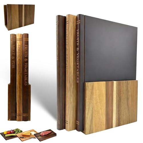 Cutting Boards That Look like Books, Book Cutting Board Set, The Cutting Board Library, Set of 3 Solid Wood Book Shaped Cutting Board Library with Wooden Stand, for the Books Loving Chef (1 Set-3 Pcs)