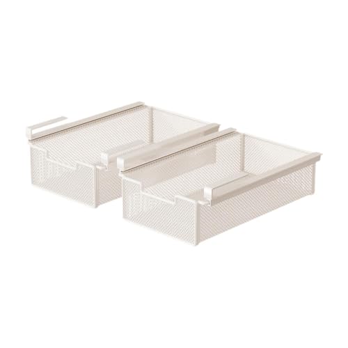Under Shelf Storage Basket, Hanging shelf basket Slides Under Shelves for Storage Metal Under Cabinet Shelf Basket Organizer Space Saving for Kitchen Pantry Desk Bookshelf (White Pack of 2)