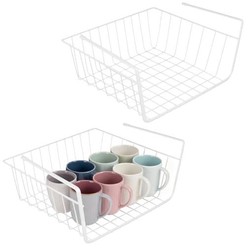 Under Shelf Basket, Iron Wire Basket Easy To Install Hanging Under Cabinet Shelf Basket for Pantry Shelves (White)