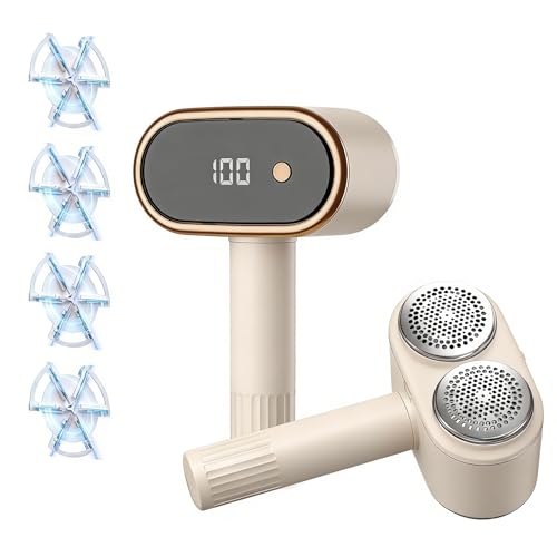 Eachway Electric Lint Remover for Clothes, Rechargeable Fabric Shaver, Sweater Shaver for Clothes and Furniture with 3-Speeds and Battery Led Digital Display, 2 Replaceable 6-Leaf Blades (Dark Grey)