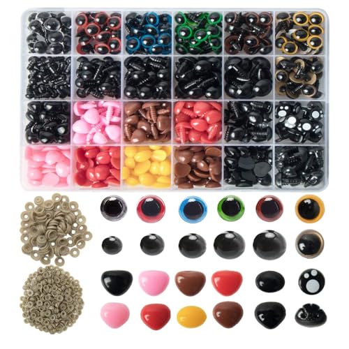 532 PCS Plastic Safety Eyes and Noses, Black Safety Eyes with Washers Stuffed Crochet Eyes and Noses for Crafts Stuffed Animals Doll (Assorted Sizes)