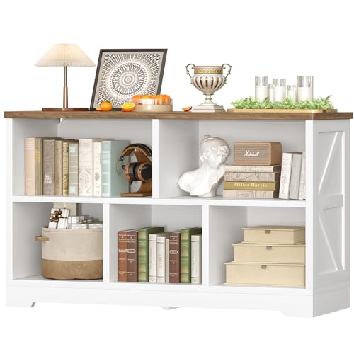 Hzuaneri Bookshelf, Book Shelf, Industrial Bookcase with 2 Hooks, Coner Shelf Storage Organizer for Home Office, Living Room, Bedroom, Kitchen, 5-Tier White Gold BC10513G