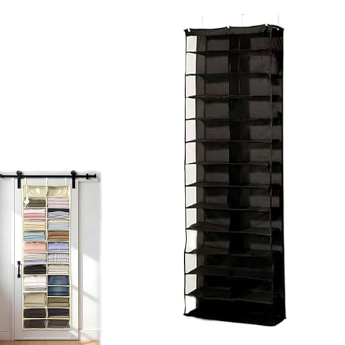 Over the Door Shoe Organizer 24 Pocket Hanging Storage with 4 Hooks Durable Non-Woven Fabric Breathable Mesh Pockets Space Saving Back of Door Organizer for Flats Sneakers Heels Boots Closet